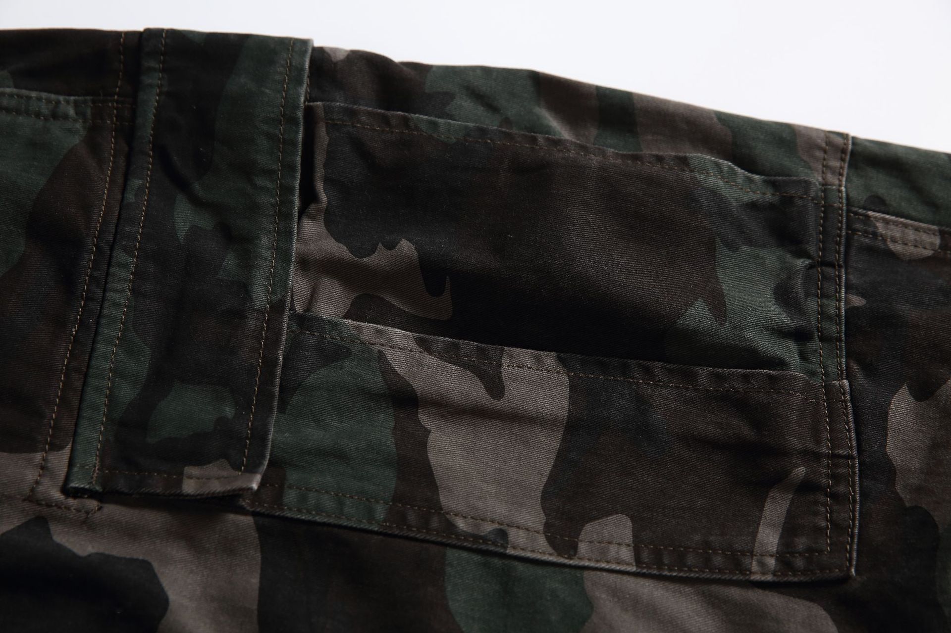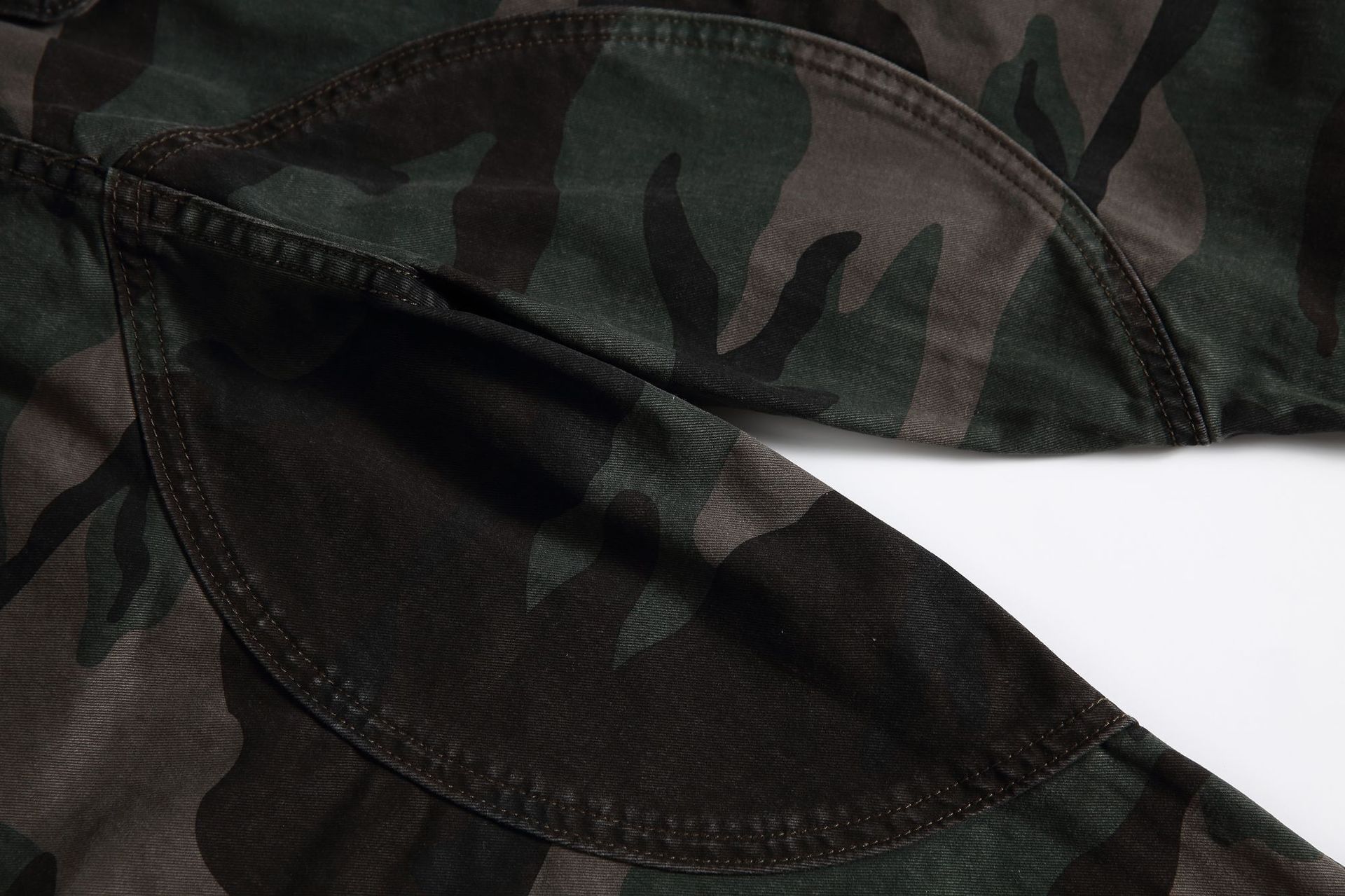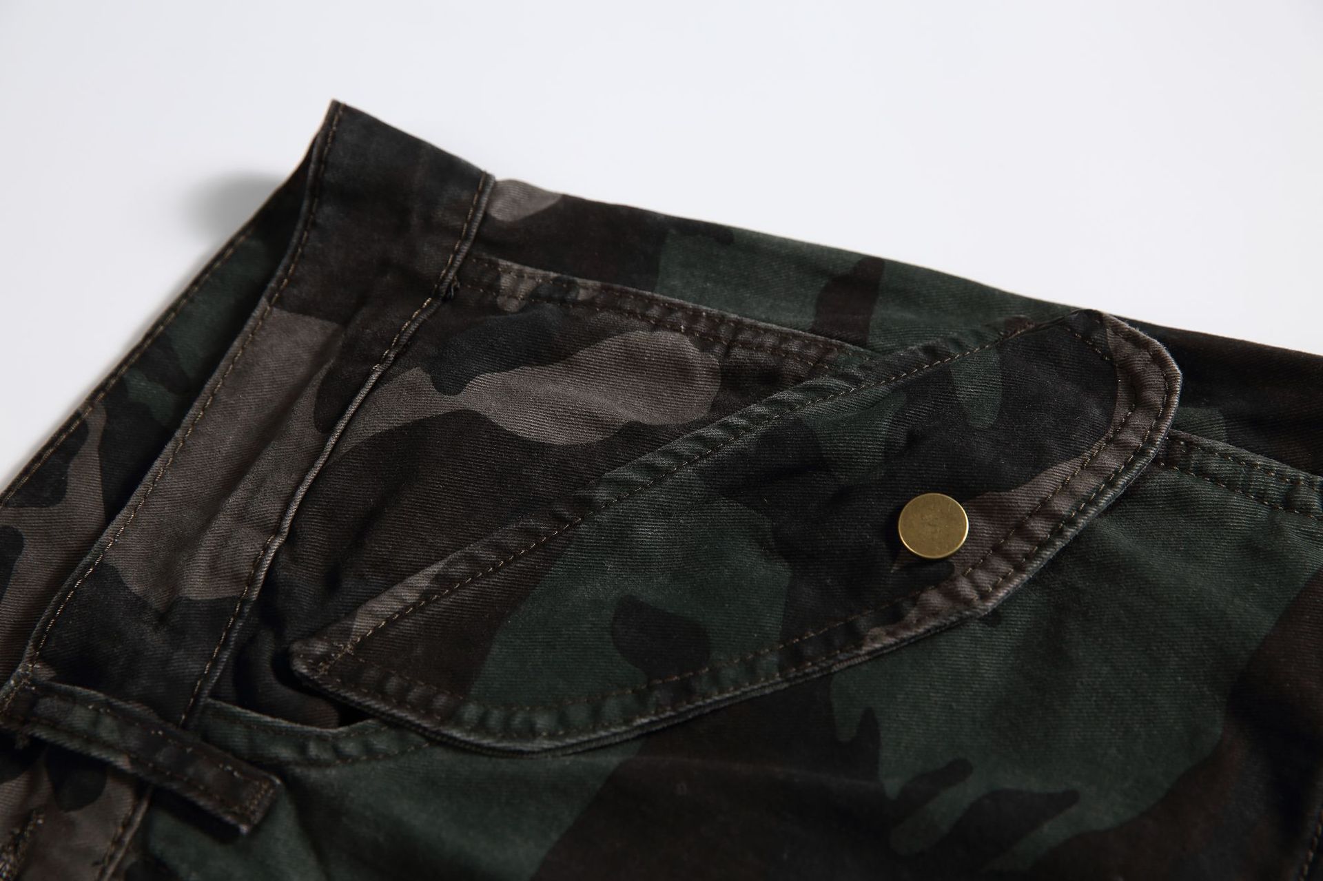 A cotton-blend fabric introduces soft durability with slight stretch, maintaining shape without restricting comfort. Camouflage tonality adds depth and attitude while staying wearable across multiple styling directions — from layered outerwear to minimal tops.